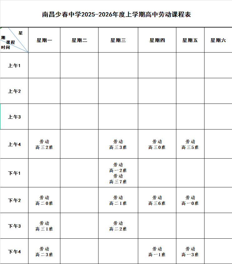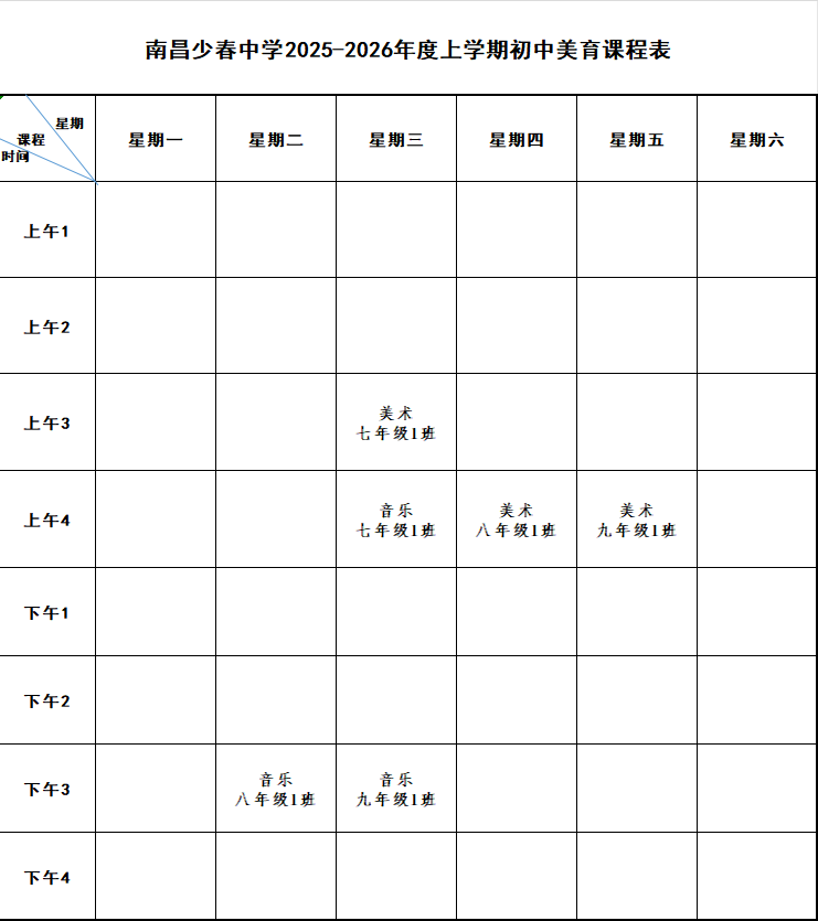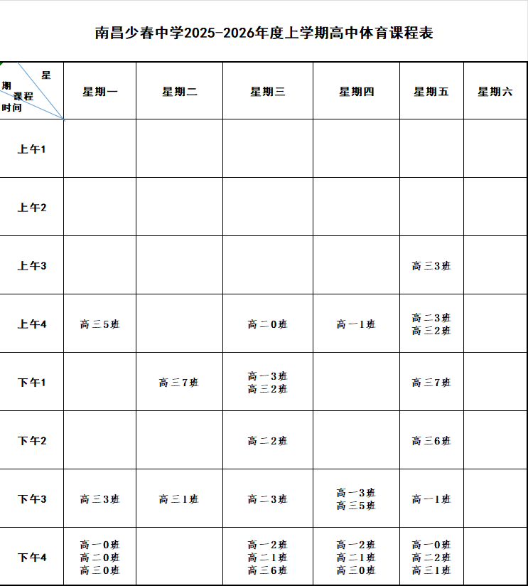 南昌少春中学2025-2026年度第一学期晒课表公示