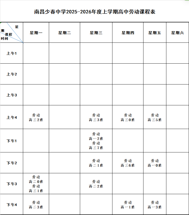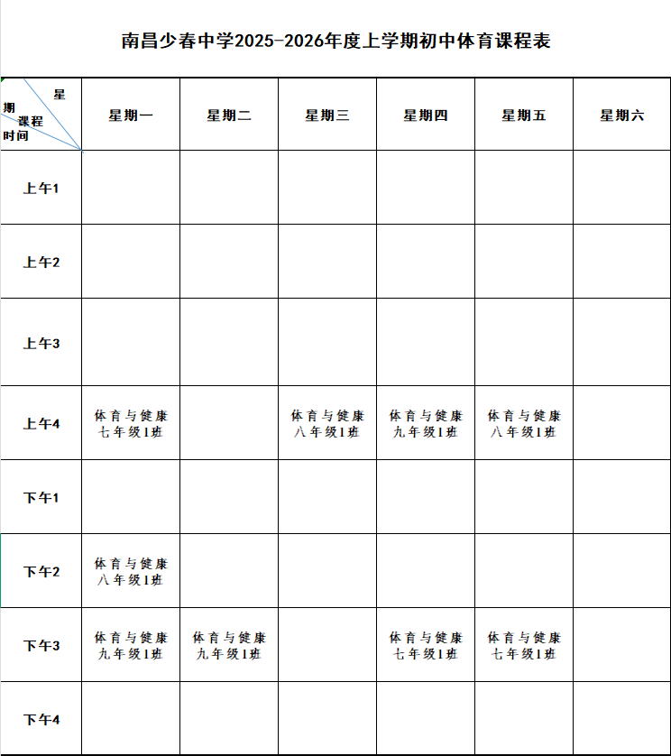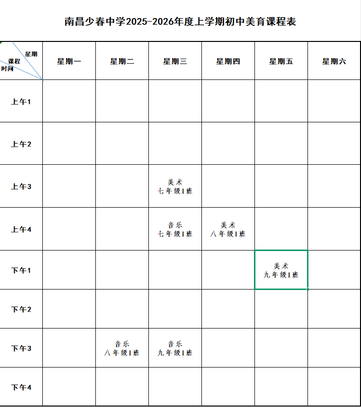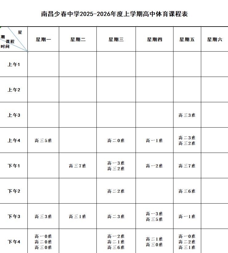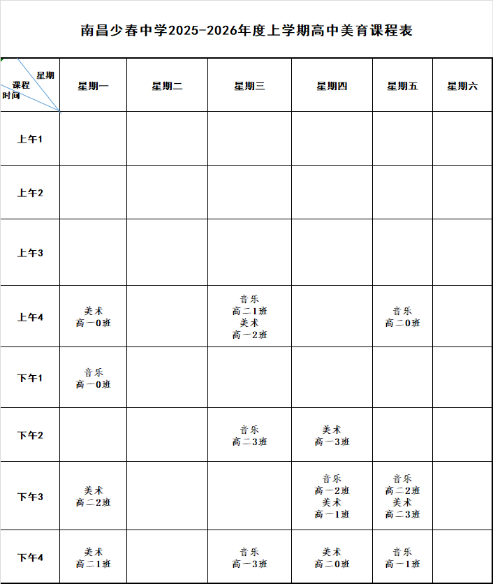 南昌少春中学2025-2026年度第一学期晒课表公示