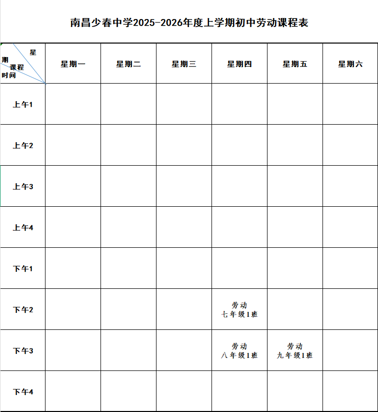 南昌少春中学附属小学2024-2025学年度第一学期课后服务总课表